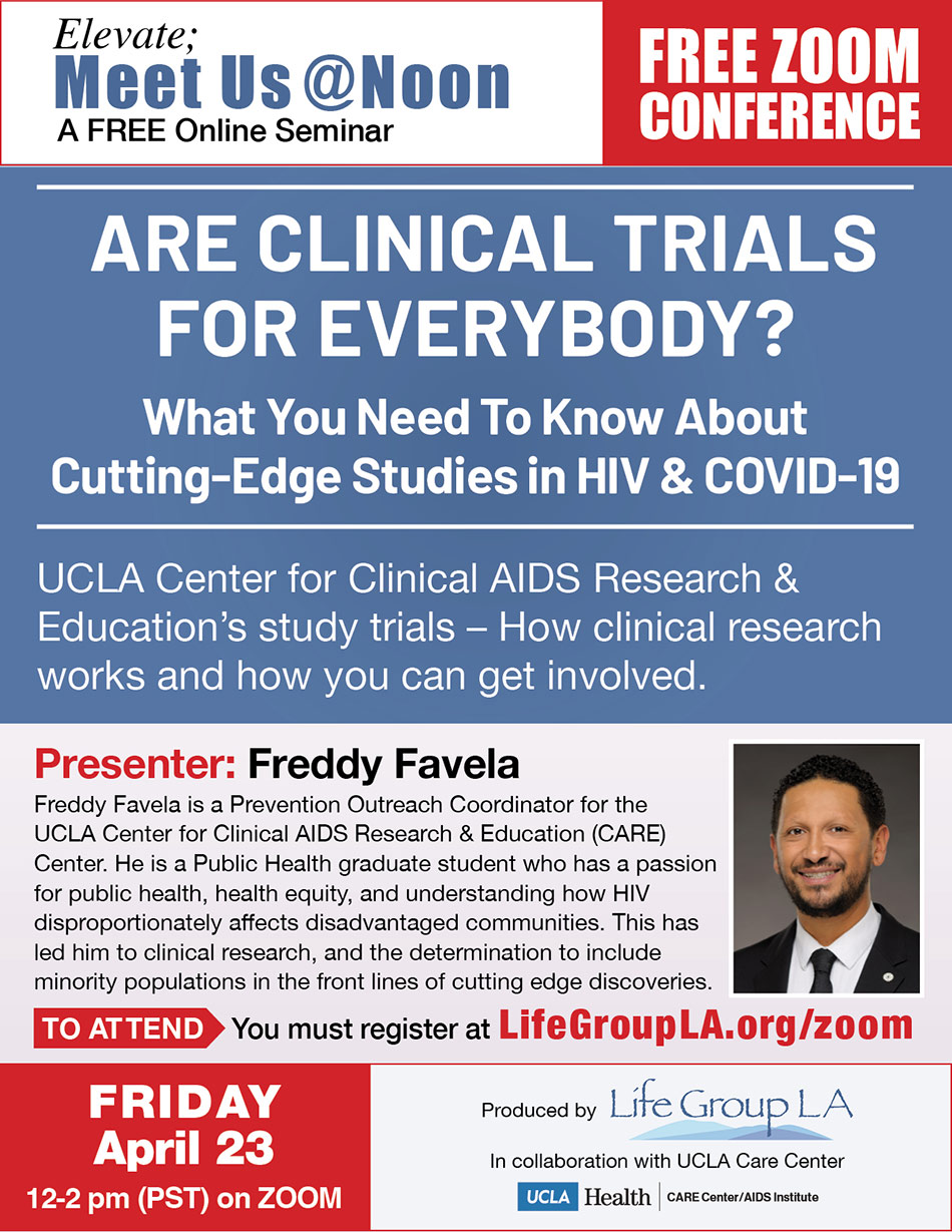Topic: Living With HIV in The Covid-19 Pandemic Collaborators: Life Group LA, HIV Thrive, and The Public Health Pharmacist Presenters: