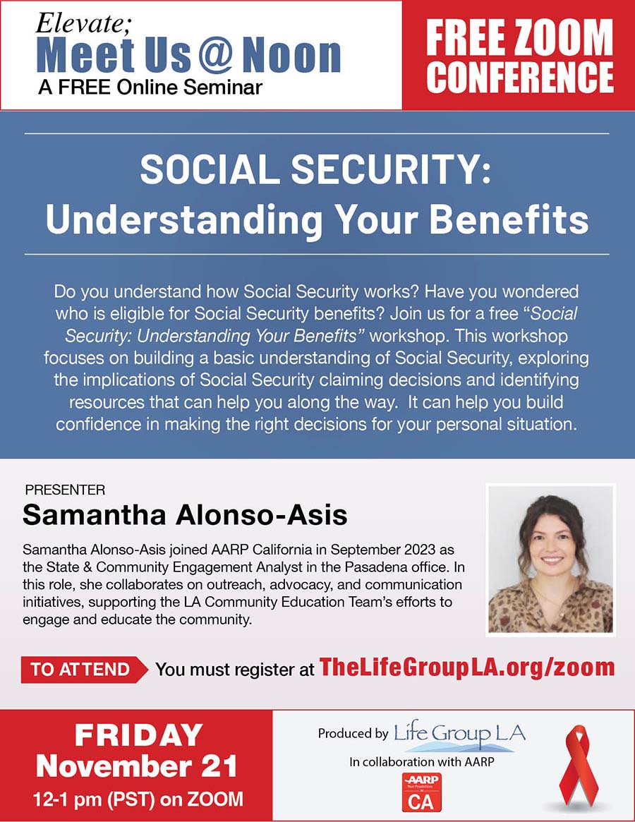 Do you understand how Social Security works? Have you wondered who is eligible for Social Security benefits? Join us for a free Social Security: Understanding Your Benefits workshop. This workshop focuses on building a basic understanding of Social Security, exploring the implications of Social Security claiming decisions and identifying resources that can help you along the way. It can help you build confidence in making the right decisions for your personal situation.